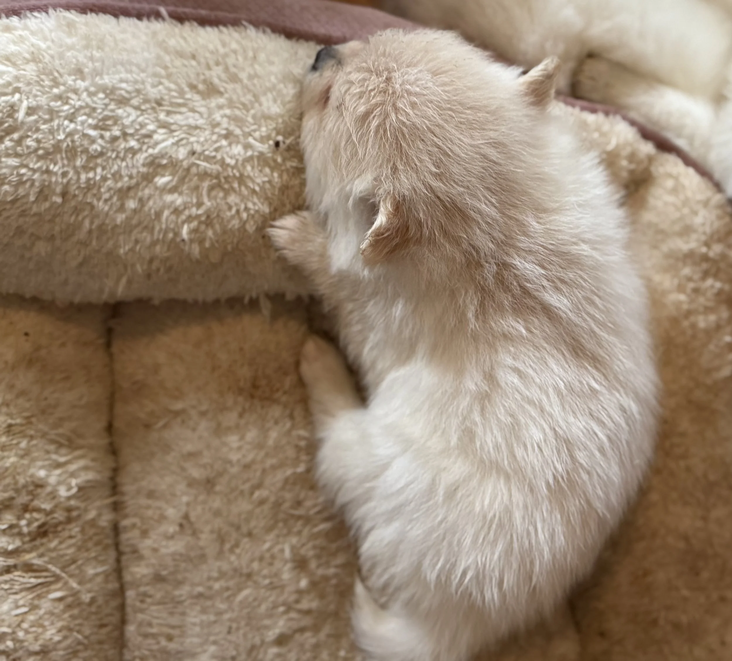 Clark is a handsome cream sable, he will be around 6-8 pounds full grown. He has had his first shot and worming. Clark is very playful and is a great helper when I am changing sheets or cleaning the floor. He loves to be held and snuggled and gives kisses freely.